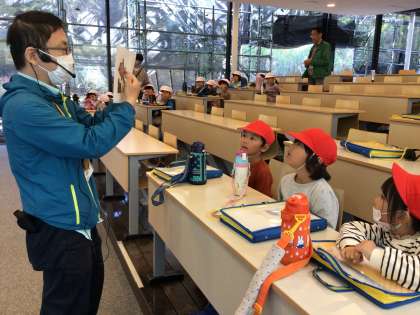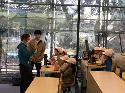 1、2年生 校外学習 その6 公開日 2023/11/08 更新日 2023/11/08 各学年から 木の実や葉っぱの採取を終えた後、学習室に戻り、4枚の葉っぱをワークシートに貼りました。どの葉が何という名前だったのかを確認しながら慎重に貼りました。また、担当レンジャーから、森で見かけた巣箱に何がいるのかを教えていただきました。楽しく学ぶことができたよい時間となりました。「また冬休みに来てみたいな」とつぶやく子達もいたので、ご都合がついたら、ぜひご家族でもお出かけください。