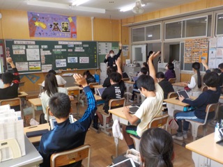 6年生 図書館出前授業 公開日 2023/11/09 更新日 2023/11/09 各学年から 豊田市中央図書館から講師をお招きして、インターネットの使い方について授業をしていただきました。学習用タブレットなどで、インターネットで調べることが多い6年生ですが、改めて授業で学び直すと新たな発見がありました。とても楽しい授業で子ども達は一生懸命に取り組んでいました。学んだことを生かし、キーワード検索だけでなく、サイト内のワード検索やマイナス検索を活用してインターネットを活用していきたいです。