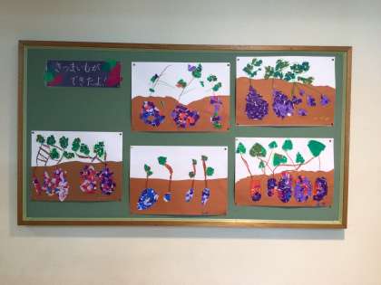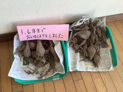 「さつまいもができたよ」 公開日 2023/11/09 更新日 2023/11/09 各学年から あおば教室前に、折り紙でできたさつまいもの掲示物と、さつまいものつるで作られたリースが飾られています。 個性豊かなさつまいもたち。とても色鮮やかで、廊下が明るくなりました。 リースは冬に向けて、今後飾りをつけていきます。 昇降口には、1・6年生が掘った、さつまいもも置いてあります。 ご来校の際には、ぜひご覧ください。