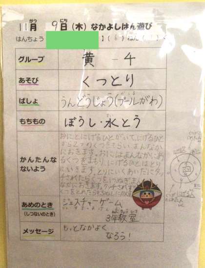 なかよし班遊び 公開日 2023/11/09 更新日 2023/11/09 各学年から 長放課、なかよし班遊び(たてわり遊び)がありました。 黄色班では、6年生が低学年の意見を聞きながら鬼を決めたり、分かるように説明をしたりと、全員が楽しめるような工夫をしていました。 次回も楽しみです。