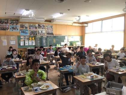 今日のなしゼリーには、豊田市産の「新高(にいだか)」という種類のなしを使っています。新高は、甘みがあって酸味が少なめです。また、他のなしより大きく、果汁が多い特徴もあります。給食のなしゼリーは、なしの食感を感じる仕上がりになっていました。