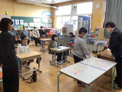 あおば1組とあおば2組は、自立活動「お買い物に行こう」を合同で行ないました。12月1日の校外学習に向けて、リニモの乗り方や買い物でのお金の支払い方を練習しました。