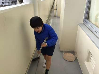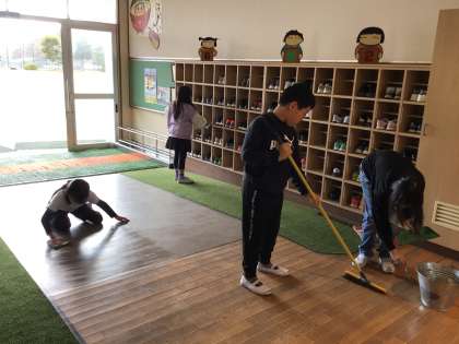ミニ掃除だったので、時間はいつもよりも短かったのですが、短時間で何ができるかを班長さん中心に考え、一生懸命掃除をしていました。