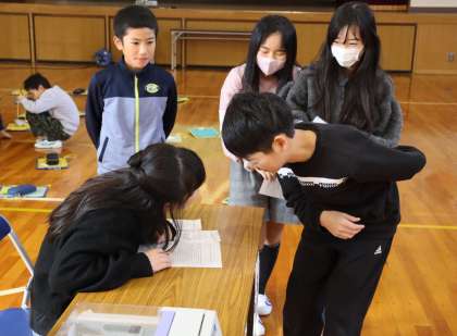 選挙管理委員会事務局の方に来ていただいて、選挙の仕組みや投票の仕方について勉強しました。実際に模擬選挙を行ってみることで、本番の流れを体感することができました。本当の選挙のように、受付をして専用の機械から投票用紙をもらい、投票記載所で立候補者の名前を書き、投票箱に入れました。また、今回は投票するだけでなく、選挙管理委員さんとして、投票用紙を準備したり、投票済書を渡したりもしました。投票用紙はプラスチック素材が混ぜられており、破れにくいことを知り、実際に破ろうと試みました。一つ一つが、新鮮な経験となりました。
