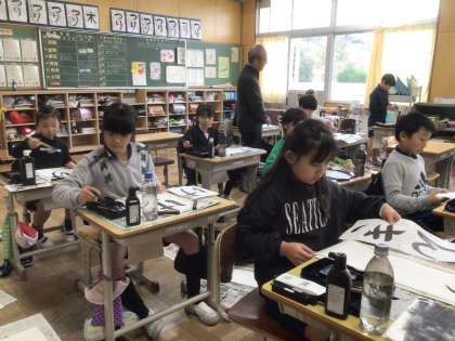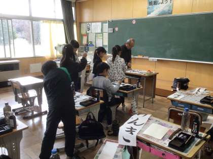書写ボランティアさんに来ていただき、書き初め練習の支援をしていただきました。3年生は、力強く書くことができますが、手本をよく見て大きさを揃えることや形を整えることなど、上手になるためのコツを教えていただきました。教えていただいたことをもとに、しっかり練習して、本番で最高の字を書いてほしいです。