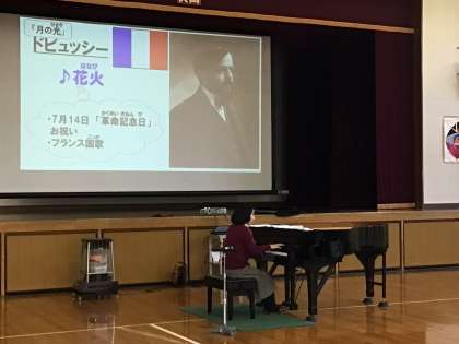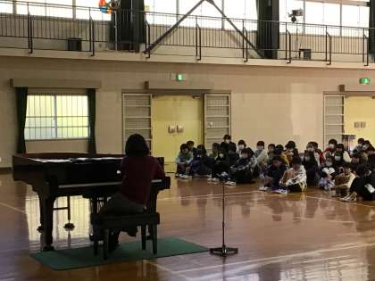 村田かれんさんの、優しくも力強い、心地のよいピアノの音色が体育館に響き渡りました。ピアノのことをたくさん教えていただき、美しいピアノの音に触れられた貴重な時間になりました。