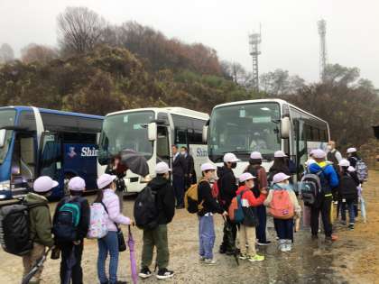 6年生の司会で出発式を行い、バスに乗り込みました。見送りをしてくださる方々に手を振り、「行ってきま〜す」と、子どもたちも笑顔いっぱいで出発しました。よい1日になりそうです。