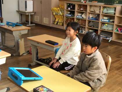 学校図書館司書さんによるエプロンシアターと紙芝居がありました。聞いたことのある昔話も、学校図書館司書さんのエプロンシアターや紙芝居だとひと味もふた味も違います。子どもたちは、大喜びで、身を乗り出して、楽しんでいました。