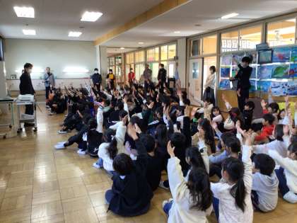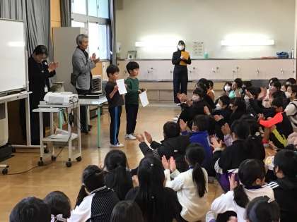 冬休み前、全校集会が行われました。校長による読み聞かせ「まいにちがプレゼント(いもとようこ作)」と、楽しい冬休みを過ごすために「おとしだま」の話が、生徒指導担当からありました。また、作文、標語など各種コンクールで優秀な成績を収めた児童たちの表彰がありました。仲間の頑張りを拍手で称える大畑っ子の姿も立派でした。