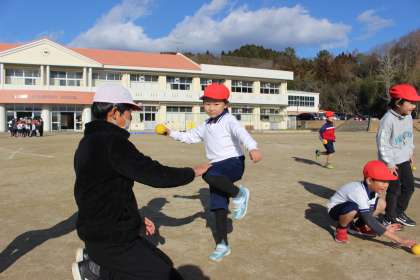 6年生の話を真剣に聞き、頑張って取り組む1年生の姿を見て6年生は、とっても嬉しそうでした。「これから、一緒に野球がしたい!」と楽しみにしていました。