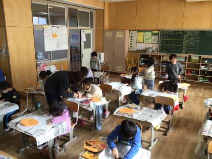 生活科 冬とあそぼう 公開日 2024/01/16 更新日 2024/01/16 各学年から 凧に絵を描きました。まずは、下描きです。学習用タブレットを使って、イラストや写真を探して描く子もいました。凧の素材は不織布で、えんぴつやクレヨンパス、油性ペンを使って描くのは少し難しかったようですが、楽しそうに取り組んでいました。