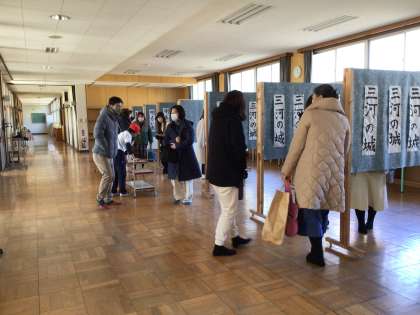 校内書き初め展の参観ありがとうございました 公開日 2024/01/18 更新日 2024/01/18 お知らせ 昨日、なわとび大会に続けて、校内書き初め展も参観いただきありがとうございました。校内書き初め展は、1月26日(金)までです。期間内にご覧になる方は、職員室に声をかけてからご覧ください。