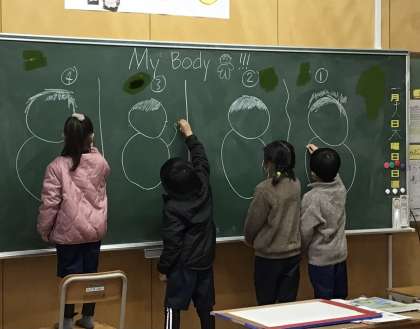 1年生 英語の時間 公開日 2024/01/22 更新日 2024/01/22 各学年から ALTの先生と英語の勉強をしました。テーマは「My body」です。Simon says…のゲームでは、よく耳をすまして活動していました。2つ目の活動は、ラッキーパーソンが雪だるまに体のパーツを描いていくものでした。どんな絵になるのかみんな興味津々でした。