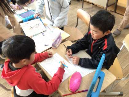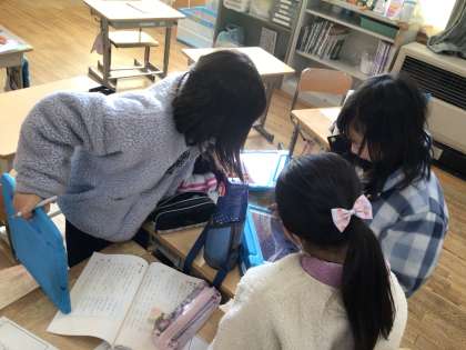 2年生 国語科「おばあちゃんに聞いたよ」 公開日 2024/01/22 更新日 2024/01/22 各学年から 2年生では、国語科「おばあちゃんに聞いたよ」の単元で、昔の言い回しや、伝統遊びについて学んでいます。教科書や学習用タブレットで調べたり、友達や教師にインタビューをしたりして、調べ学習を進めています。ご家庭や地域でも、話題にしていただけるとありがたいです。
