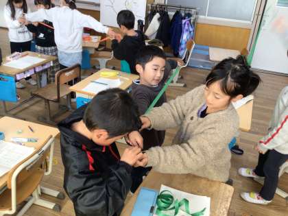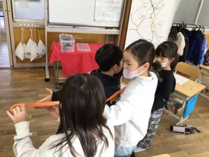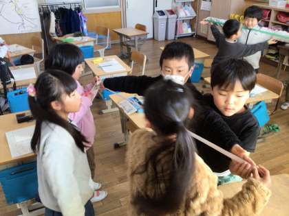 2年生では、長さの学習をしています。今日は、両手の長さを予想して測りました。子ども達は、「予想より長かったよ」「身長と同じくらいだ!」と様々など気付きを得ながら取り組むことができました。これからの学習でも、日常生活と関連付けながら、学習に取り組んでいきます。
