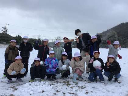 2年生では、真っ白に積もった雪を前に、笑顔いっぱいでした。
