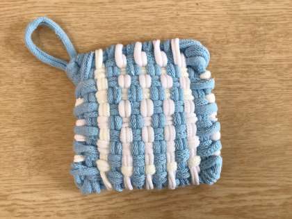 靴下の端材を使ってエコたわしを作りました!