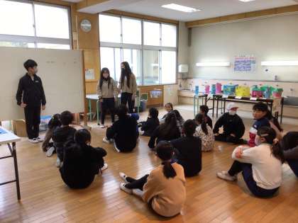 5年生が中心となって行う、初めてのなかよし班遊びがありました。若干緊張している5年生でしたが、傍らには、頼りになる6年生の存在がありました。遊びのルールを補足したり、タイミングよく声かけをしたりする6年生がいるおかげで、5年生も安心してなかよし班遊びを進めていました。