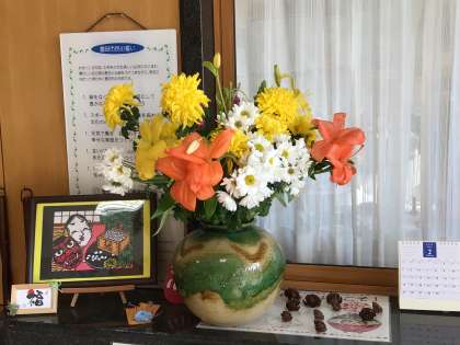 地域の方より、素敵なお花をいただきました。両手にたくさんのお花を抱えて、わざわざ足を運んでくださいました。早速玄関と校長室に飾らせていただいています。大畑っ子の皆さんも、地域の方の温かいお心遣いを感じに、玄関へお花を見に来てくださいね。