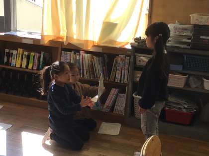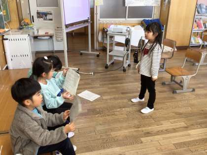 学習発表会に向けて、練習にも熱が入ります。「今から10分練習時間をとります」と伝えると、子どもたちは、自分たちで考えて、近くにいる人と練習を始めました。お互いにせりふを聞き合って、コメントしたり、アドバイスしたりしていました。学習発表会では、練習の成果が発揮されるといいですね。