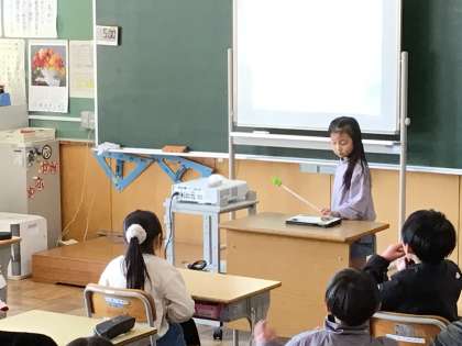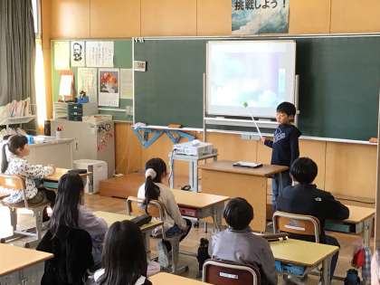 3年生は学習発表会で、大畑小学校に住む生き物について発表しました。学習用タブレットを使って、生き物の説明をしたり、生き物クイズを出したりしました。