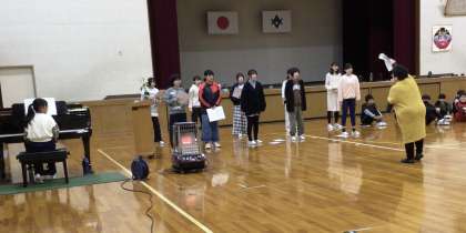 外部講師の方に卒業式の歌の指導をしていただきました。音の強弱や声の出し方など、細かい点についても指導していただきました。前回指導していただいたときと比べて、上手になっていると、お褒めの言葉をいただきました。卒業式まで約1か月あるので、さらに練習して、心を込めてきれいな歌声を響かせるように頑張っていきます。