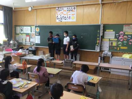 6年生を送る会の飾り付けは、4年生が中心となって活動しています。4年生は、5年生と1〜3年生に協力をしてもらうために給食後に説明に行きました。まずは、先週依頼していたぬり絵を集め、次に絵をかいてもらうための用紙を配布しました。最後に、次の飾り付けの活動について日時や持ち物などを伝えました。会場の体育館がきれいに飾れるようにがんばっています。
