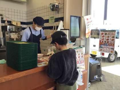 前回の校外学習での経験を活かして、スムーズに切符やおやつを買うことができました。今回は新たに昼食を注文し、受け取る課題に挑戦しました。それぞれ練習通り落ちついて注文することができ、みんなで美味しくいただきました!!