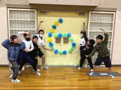 5日 6時間目、3から5年生で「6年生を送る会」。会場の飾り付けしました。