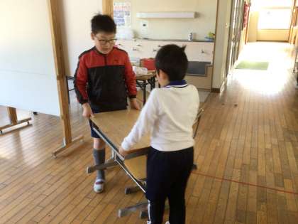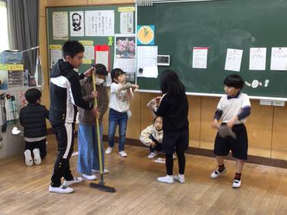 お世話になった教室や廊下などに感謝の気持ちを込め、来年度も気持ちよく過ごせるように、自分たちが過ごした場所の大掃除をしています。先週は、教室や特別教室の大掃除をして、ワックスがけを行いました。5、6年生は、自分たちの教室以外の場所もきれいにしたり、低学年の手伝いをしたりしました。週が明け、教室に机などを運び入れたときにも、低学年教室には、5、6年生の姿がありました。頼もしいお兄さん、お姉さんたちです。安全に気をつけながら、活動することができました。