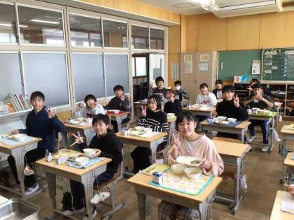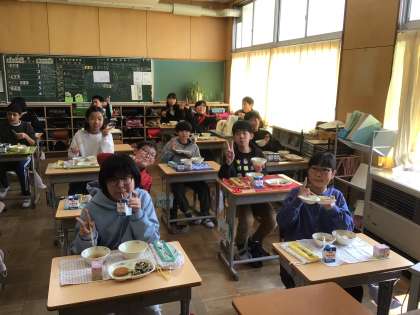 美味しい給食に6年生もにこにこです。