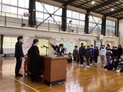 修了式を行いました。修了証書授与、代表児童の作文発表、校長の話がありました。体育館に入場するときから、とても静かに落ち着いた様子でいた大畑っ子でしたが、修了式の最中もずっとよい緊張感を保ち、仲間が証書を受け取る姿を見つめ、作文発表や校長の話に耳を傾けていました。最後に大畑小学校の校歌を声高らかに歌い、修了式は閉会となりました。大畑っ子の1年間の成長を感じた時間となりました。春休みに入りますが、事故にはくれぐれも気をつけ、元気に4月を迎えられることを教職員一同願っています。令和5年度も保護者の皆様、地域の皆様に大変お世話になりました。ご理解・ご協力をありがとうございました。