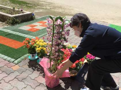 新年度に向けて、日直の教員を中心に花の手入れをしています。雨が続いていたので、久しぶりに太陽の下に出られた花たちも、とても嬉しそうに、より美しく咲いています。
