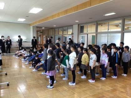 令和6年度始業式を行いました。子どもたちは、始まる前からよい姿勢で座っていて、新年度がんばろうという気持ちがあふれていました。始業式では、進級認定の後、校長から話がありました。校長が大畑っ子に大切にしてもらいたい「あいうえお」の話を、熱心に耳を傾けて聴いていました。職員紹介では、どの先生がどの学年になるのか興味津々の様子でした。養護教諭や心の相談員の紹介では、これまでお世話になったことを思い出してか、ほっとした表情を見せる大畑っ子もいました。新年度も、心も身体も健やかに、笑顔いっぱいで、成長できる一年にしていきたいです。