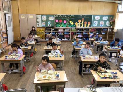 1年生 小学校初めての給食です