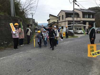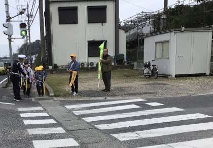 朝の登校を見守っていただきました