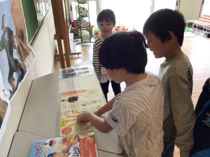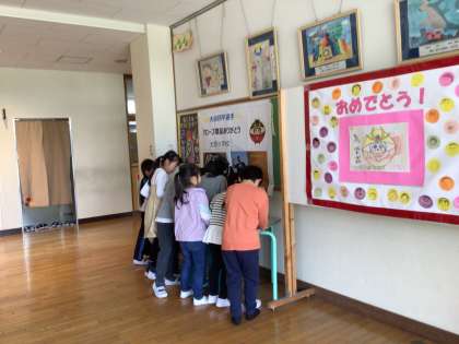 大谷翔平さんの手形と自分の手を比べました 公開日 2024/04/10 更新日 2024/04/10 各学年から 昇降口の大谷翔平さんコーナーに、新たに『野球しようぜ!大谷翔平ものがたり』の本を置きました。その中に大谷翔平さんの実物大の手形が載っていて、みんなで順番に、自分の手と比べていました。「わぁ!大きい!!」「やっぱり、すごいなぁ」と、子ども達は大喜びでした。