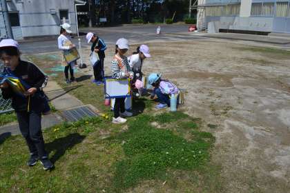 2年生最初の生活科 公開日 2024/04/11 更新日 2024/04/11 各学年から 2年生は昨年度に引き続いての生活科の授業ですが、担任にとっては初めての生活科でした。天候にも恵まれ、校庭に出て「春」を探してノートに記録しました。「さくらはまだ残っているよ!」「つくしが出ている!」など、春を見つけ喜びながら観察していました。