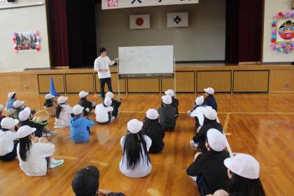 5、6年生合同体育スタート 公開日 2024/04/12 更新日 2024/04/12 各学年から 5、6年生合同体育が始まりました。初回は体育の目的について考えました。その後、2人組や4人組を作って様々な運動を楽しみました。これからもたくさん運動して、元気な心や体作りをしていきます。