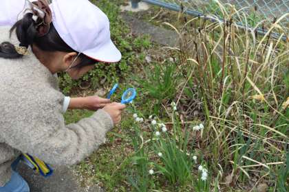 理科「しぜんのかんさつ」の単元で、虫眼鏡を使って校庭にいる生き物の観察を行いました。生き物の観察を行っていく中で、生き物の姿は「色・形・大きさ」の3つの視点によって似ていたり、違ったりすることを学びました。また、虫眼鏡を使うことで観察したいものを詳しく見ることができることを実感していました。