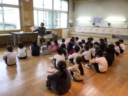 今年度初めての火曜日6限の読み聞かせが行われました。どんなお話を聞くことができるのか、1年生も2年生もわくわくして、多目的室へ向かいました。読み聞かせの後は、図書室へ行って、自分の好きな本を選んで貸出手続きをしました。今年度もたくさんの素敵な本に出会えるといいですね。