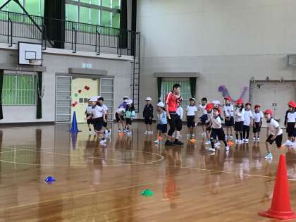 体育科の授業もスタートしてから、3週目に入り、整列したり、隊形を変えたりするのが上手になってきました。担当の教師の話を聞いて、準備体操をしたり、かけっこをしたりするのも素早くなってきました。楽しく体を動かして、気持ちのよい汗をかきたいですね。