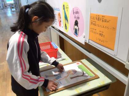 さっそく、応急手当ての方法を学ぶ大畑っ子の姿が見られました。