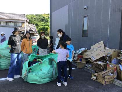 地区の回収場所に運んでくださった段ボール、雑紙、アルミ缶等を、大畑っ子も手伝ってまとめている場面を見ることができました。保護者の皆様、地区の皆様、朝早くから、資源回収してくださり、ありがとうございました。地区の資源回収の収益金は、大畑っ子が行く遠足の費用の一部になる予定です。