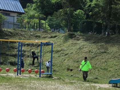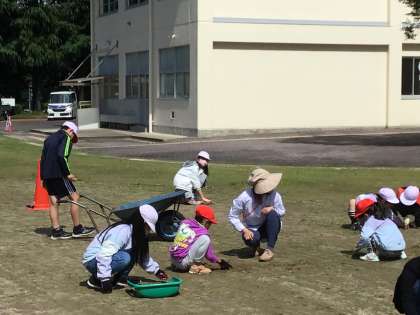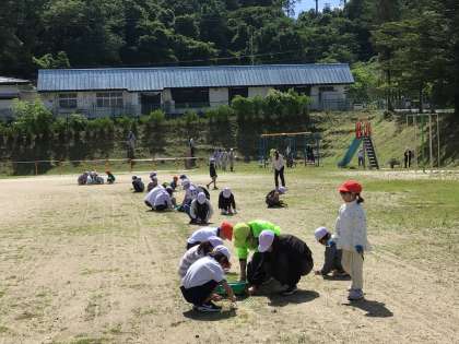 昨日の1時間目に、全校で草取りをしました。草刈りボランティアの方々が刈ってくださったのりめんの草を集めたり、運動場に生えている草を抜いたりしました。なかよし班ごとに分かれて活動しました。ボランティアに来てくださった保護者の皆様と一緒に草取りをする大畑っ子もいました。暑さ指数を確かめながら、今後も定期的に草取りをしていく予定です。ボランティアに来てくださった保護者の皆様、朝早くからありがとうございました。