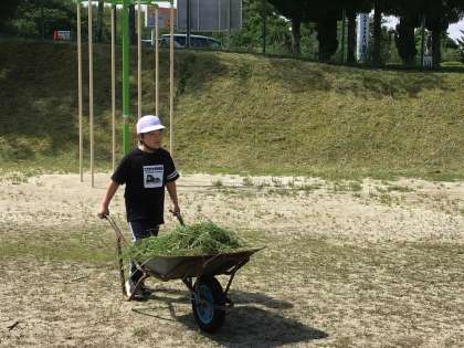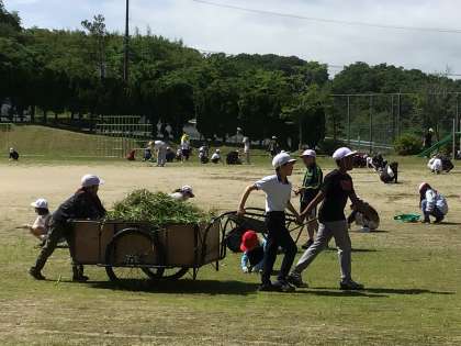 プール裏の大畑っ子農園付近に設置したコンテナに刈った草を運ぶのは、高学年の子たちの担当でした。全校草取り以前に集められた草を、せっせとコンテナに運び入れる子たちもいました。下級生の手本となって動ける大畑っ子、みんなからは見えないところでも、一生懸命活動できる大畑っ子、本当に頼もしいです。