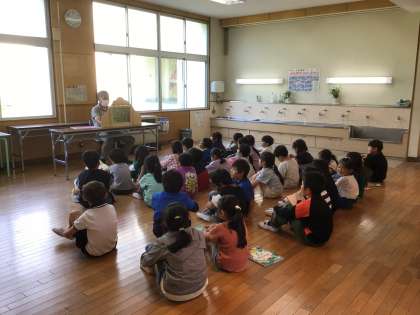 今回の読み聞かせは、母の日にちなんだ紙芝居でした。いつものような絵本とは違う読み聞かせで、子どもたちも興味津々でした。読み聞かせの後は、図書室へ移動して、読書タイムです。読み聞かせや読書は、子どもたちの言語発達等の向上、想像力を豊かにする等の効果が期待できます。ご家庭でも、短い時間でもよいので、お子さんと言葉や物語の世界に触れ、親しみながら楽しんでいただけるとよいです。