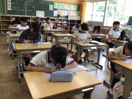 4年生 国語科漢字の練習 公開日 2024/05/16 更新日 2024/05/16 各学年から 帯学習の時間に、新出漢字の練習をしました。書き順を確かめながら、一画一画丁寧に書いていました。どの子も真剣に頑張っていました。