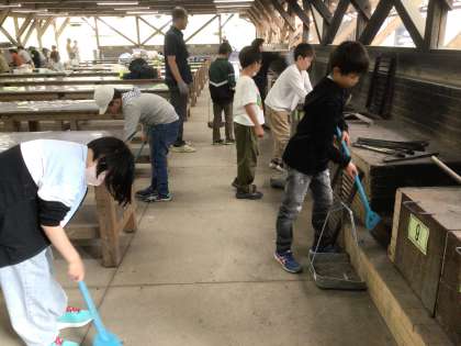 5年生 野外学習 カレー作り片付け その2 公開日 2024/05/22 更新日 2024/05/22 各学年から 使ったかまども、きれいにしています。 炭や燃えカスの掃除は大変ですが、声をかけ合い、協力して掃除しています。 学校でも上手に掃除ができる5年生なので、野外学習でも一人一人が大活躍です。