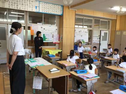 保健室と大畑っ子の安全を守ってくださっています 公開日 2024/05/22 更新日 2024/05/22 各学年から 養護教諭がキャンプの引率で不在の保健室を守ってくださるために、他校の養護教諭さんが大畑小学校に来てくださっています。1年生教室では、お名前をおうかがいした後、短時間ではありましたが、質問タイムを設けました。「何色が好きですか」「どんな動物が好きですか」「何の映画が好きですか」などの質問にも丁寧に答えてくださり、大畑っ子も大喜びでした。